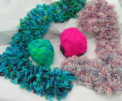 scarves shown in Turquoise (left) and Sunrise (right)